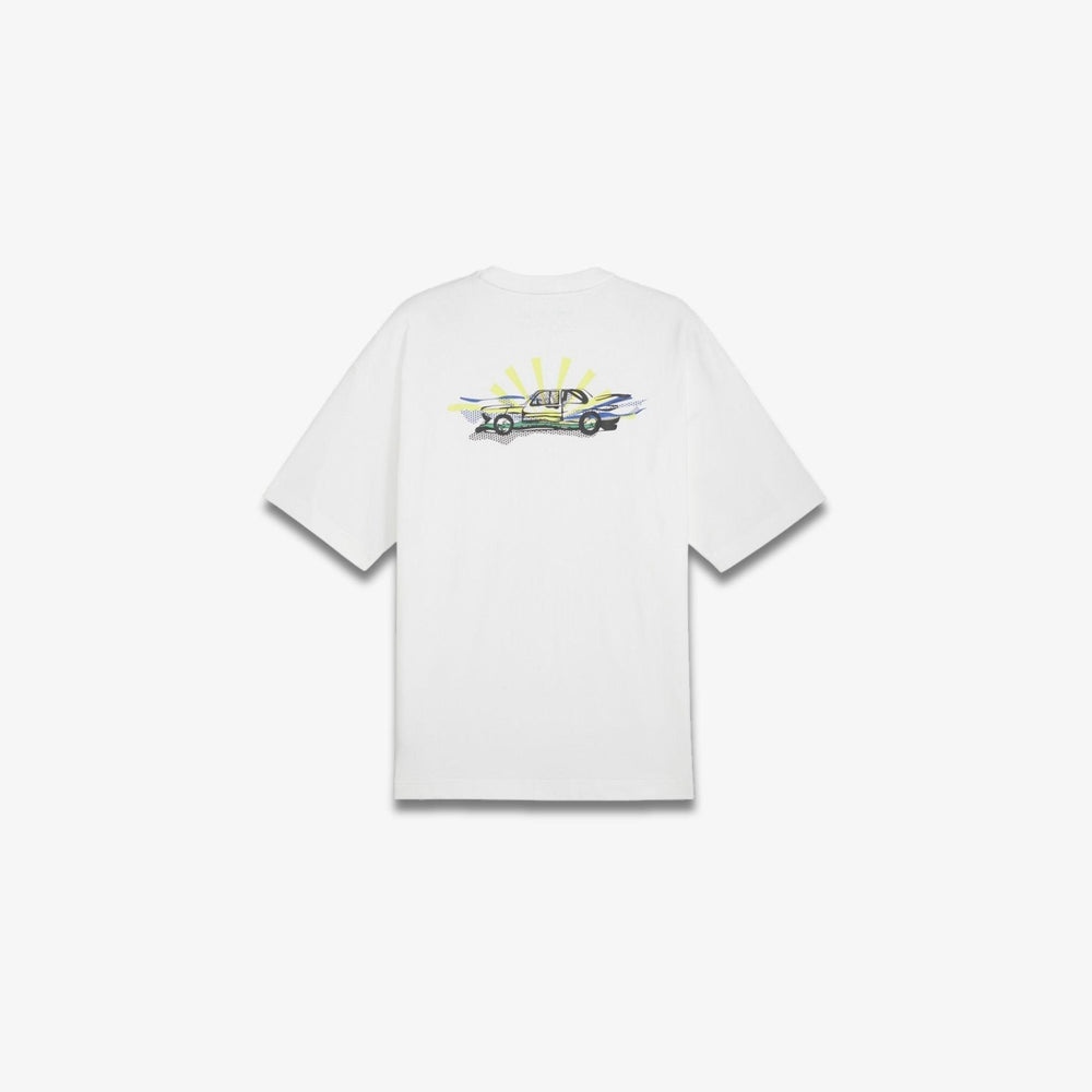 Vīriešu BMW M Motorsport T-krekls Roy Lichtenstein stilā ar izteiksmīgu BMW Art Car grafikas apdruku uz muguras. Krūšu daļā izvietots PUMA logotips, savukārt sānu vīlē iestrādāta BMW M Motorsport karoga etiķete, kas piešķir apģērbam papildu zīmola akcentu.